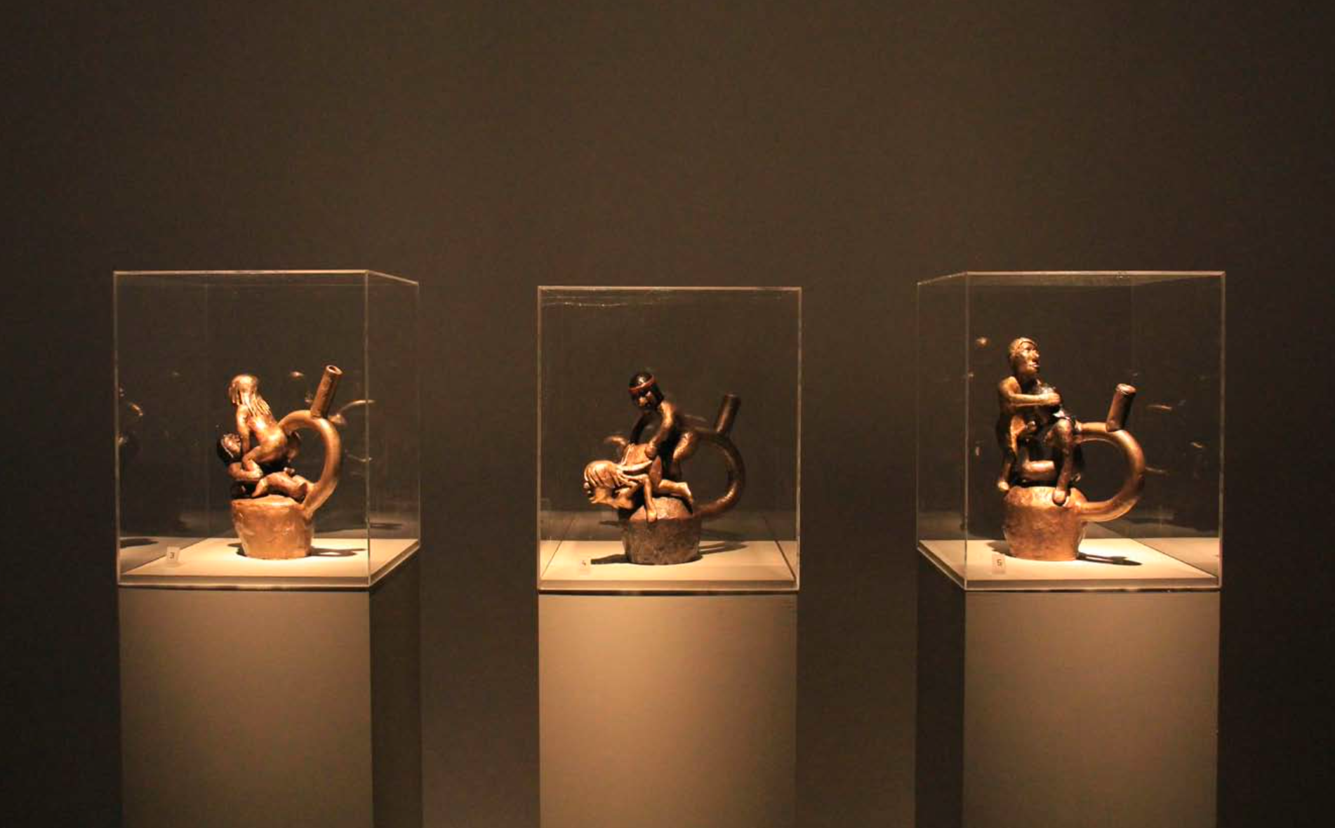 Taking as a reference these erotic ancient ceramics, the project made replicas of the three ceramics that were sold at Sothebys Paris during the time of the exhibition. In the replicas, the ethnicity of one of the characters is changed from Mochica to caucasian.